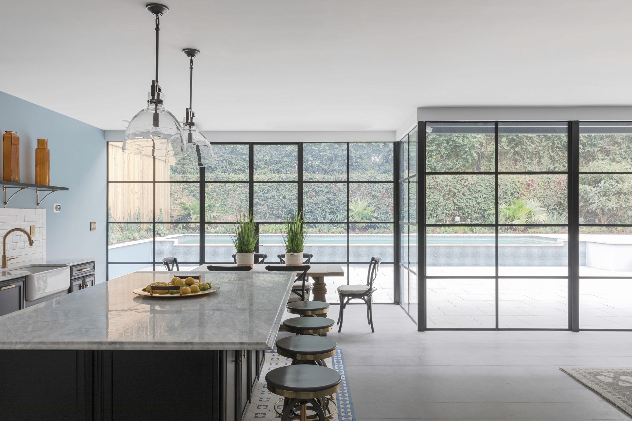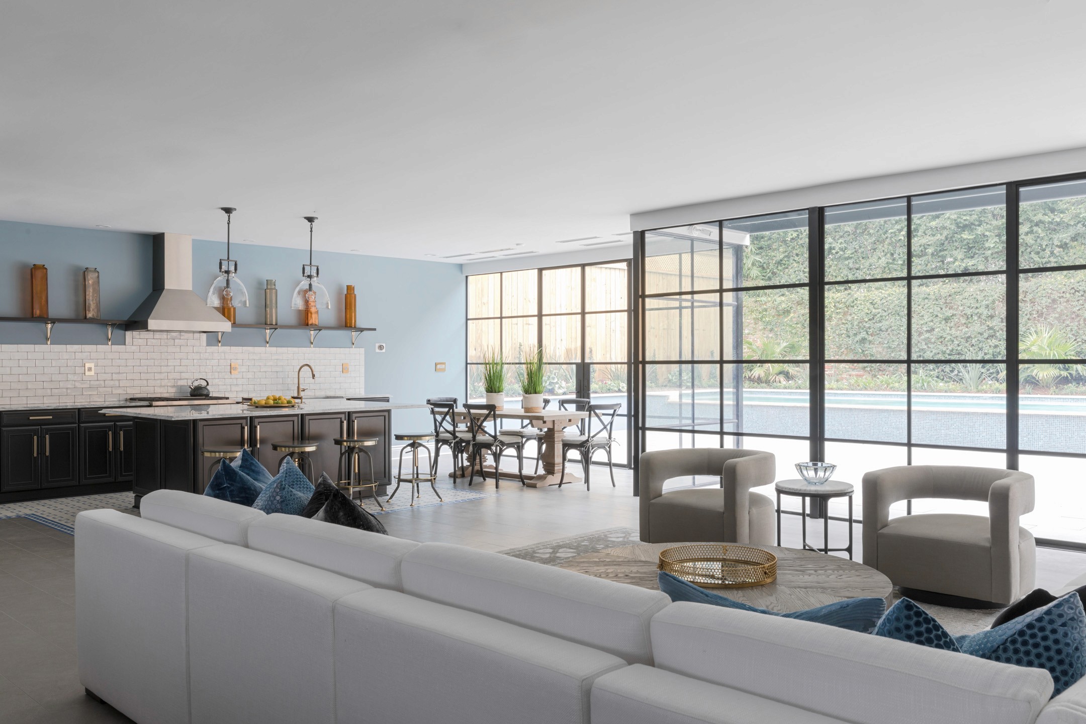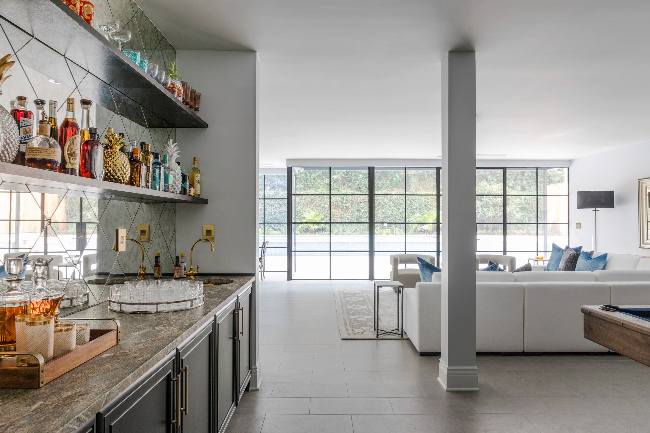 Originally built in 1921 by architect Nathan Coleman, the property was named in honor of Leland College, founded in 1870 as the first public college to educate a new generation of emancipated African Americans. Leland College was severely damaged in the great storm of 1915, but the land upon which it stood was later sold and developed into Newcomb Boulevard that still stands today. Demonstrating exemplary craftsmanship and exquisite detailing, Leland House has been lovingly refurbished to forge a strong marriage of classic and contemporary living space. True to form, the architects and designers have allowed the bones of the home to inform all the clever design trappings that lift the space to the pinnacle of indulgence. Truly ground-breaking, Leland House is one of the area’s most impressive single-family dwellings, comprising 5,725 square feet of internal accommodation with four bedrooms and five bathrooms, on a 7,700 square-foot lot. Abound with flourishes of modern ingenuity, where a prohibition-inspired bar can sit so easily against dynamic, steel-framed windows, the home embodies a sophisticated understanding of luxury. Set across three sprawling floors, the internal areas at Leland House include an expansive master suite and balcony with three additional en-suite bedrooms, two kitchens, a formal dining room, and formal sitting and sun room. The entertainment floor includes a cinema, billiard room with wet bar, office with club reception, and a large informal living area.